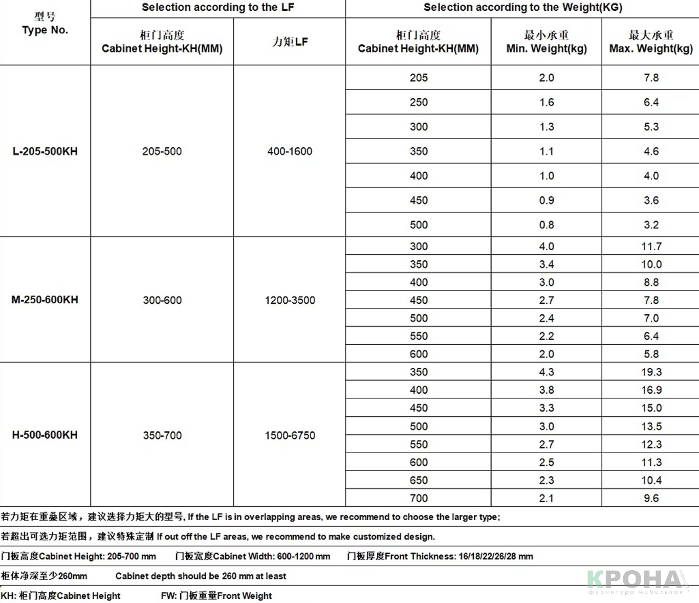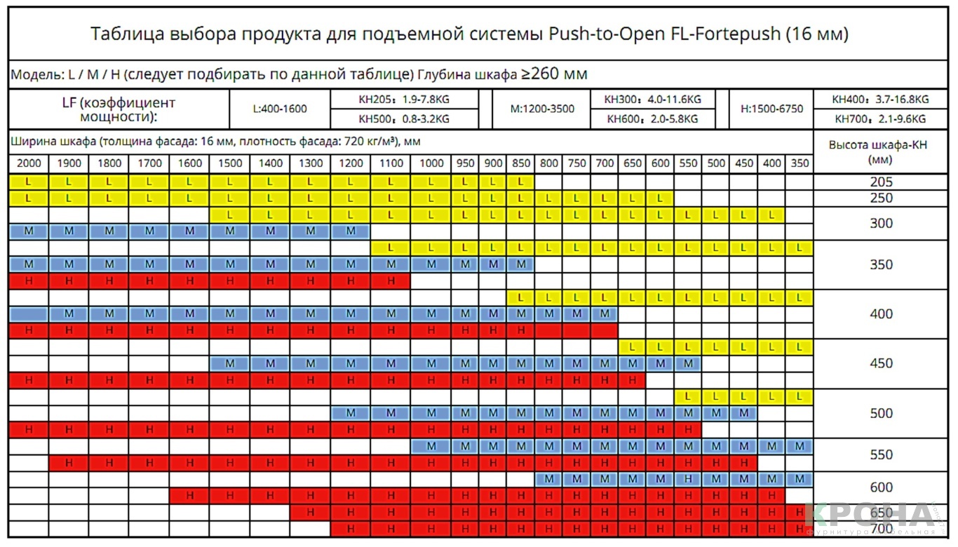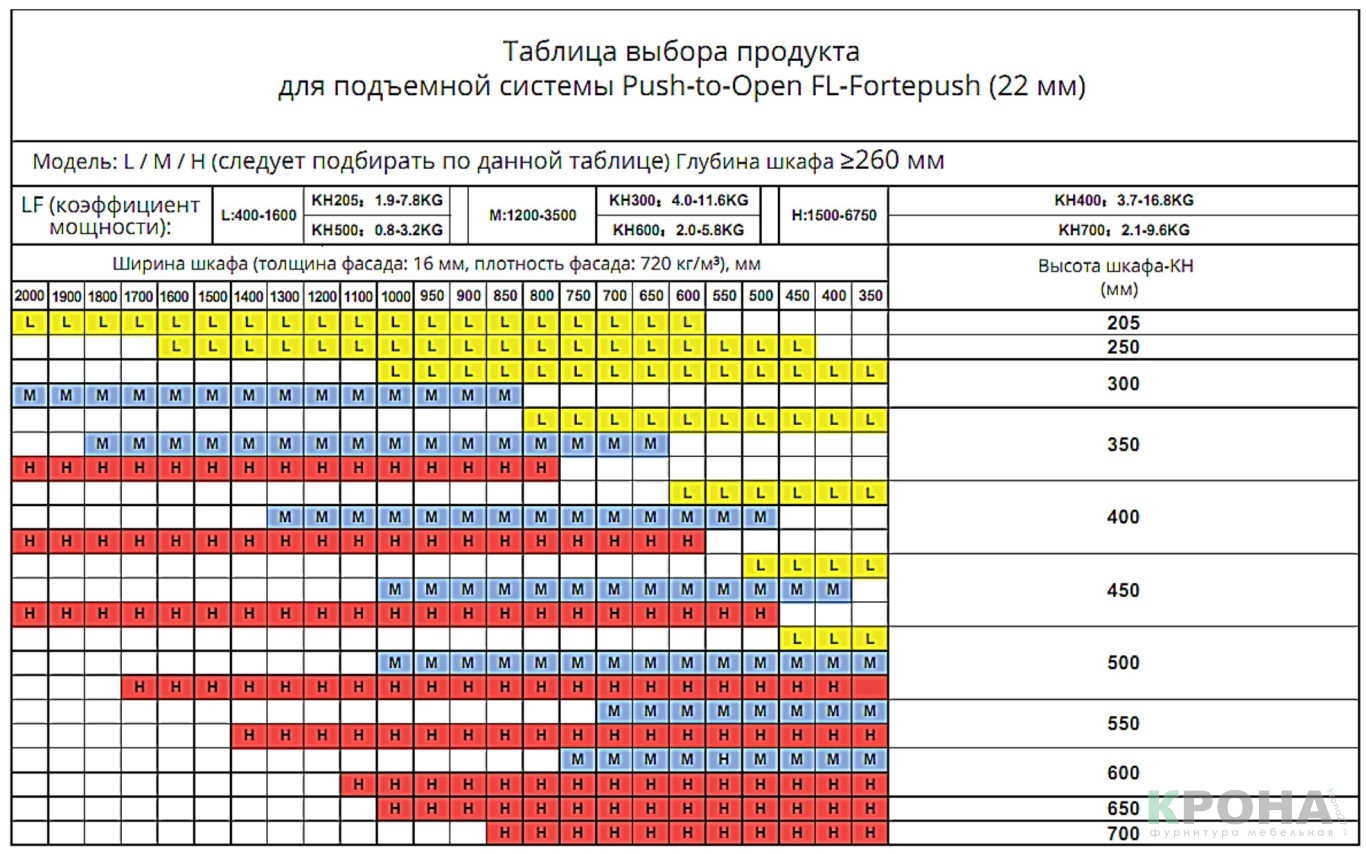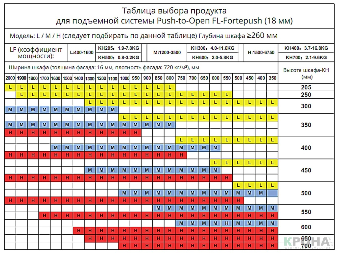 6. Расчет нагрузки на подъемные механизмы в зависимости от ширины и высоты фасада ящика
