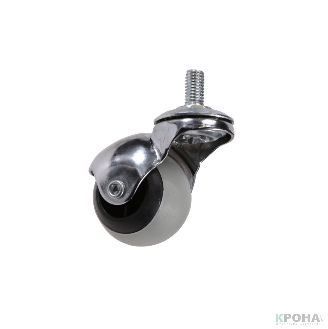 Опора КОЛЕСО закрытое ШАР d=40мм (винт М8 с гайкой, прорезиненное, мягкий ход, СЕРЫЙ, черный)