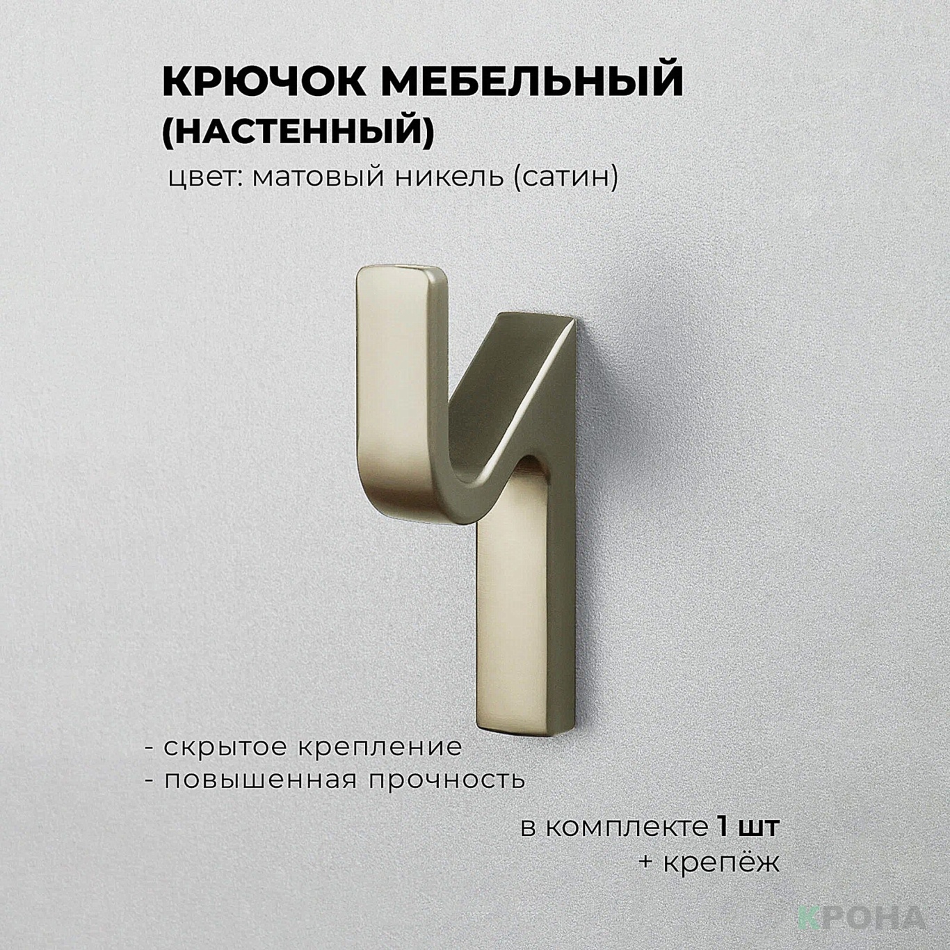 Крючок 1х рожковый САТИН НИКЕЛЬ Z113 (Hook ZIGZAG, скрытый монтаж) (8953)