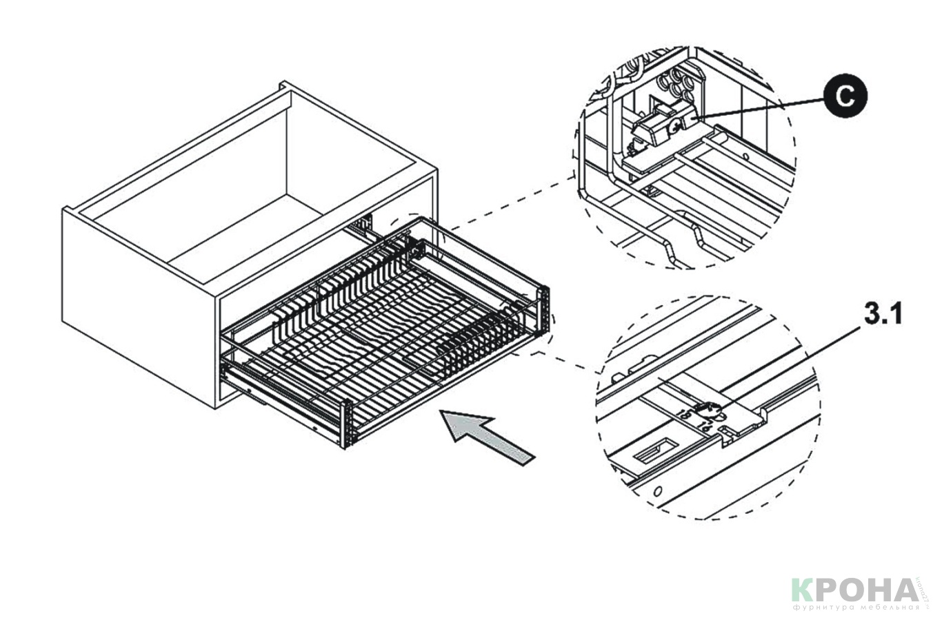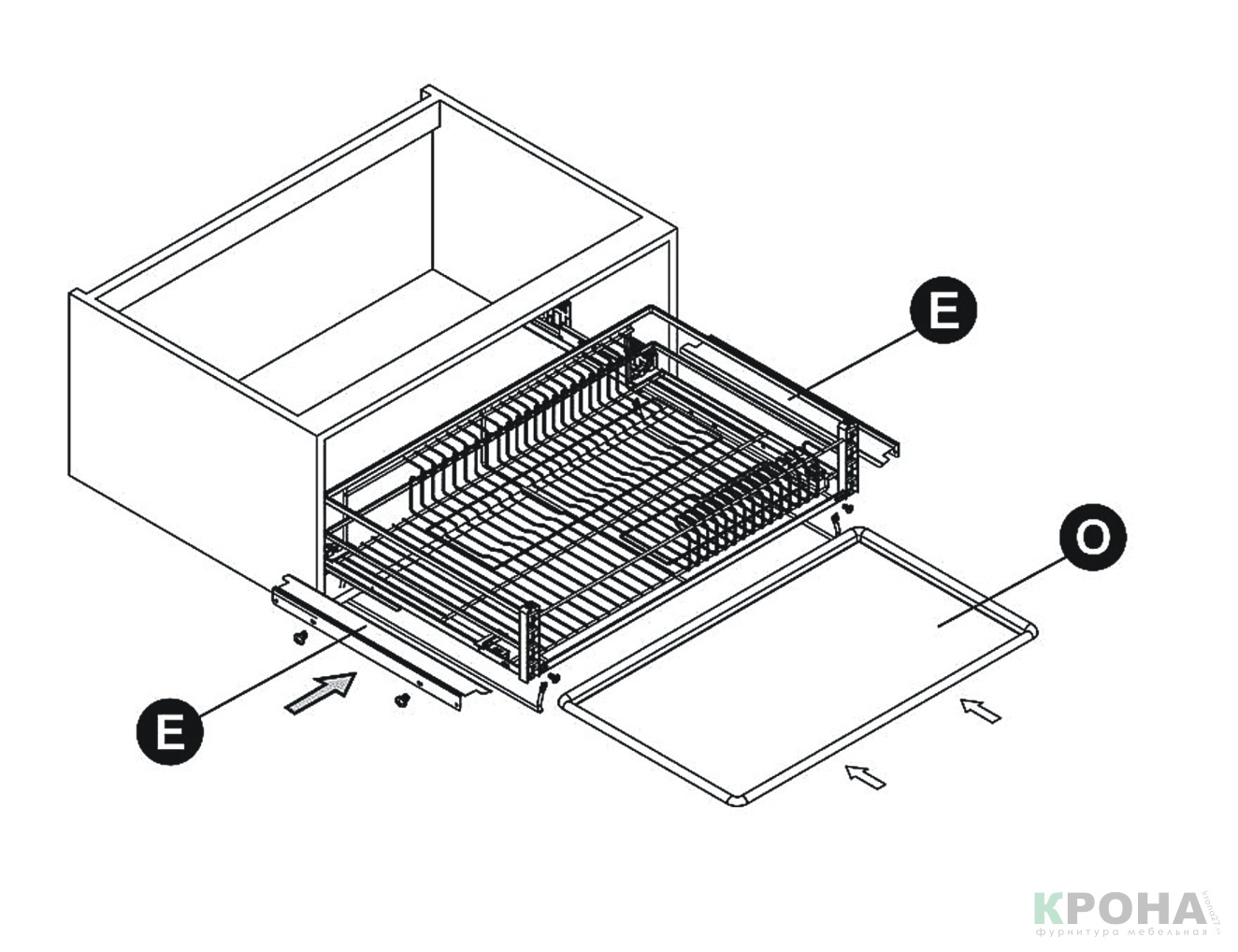Инструкция по установке выдвижных корзин-посудосушителей (тип KRS06, плоский пруток, базы 600, 700, 800, 900)
