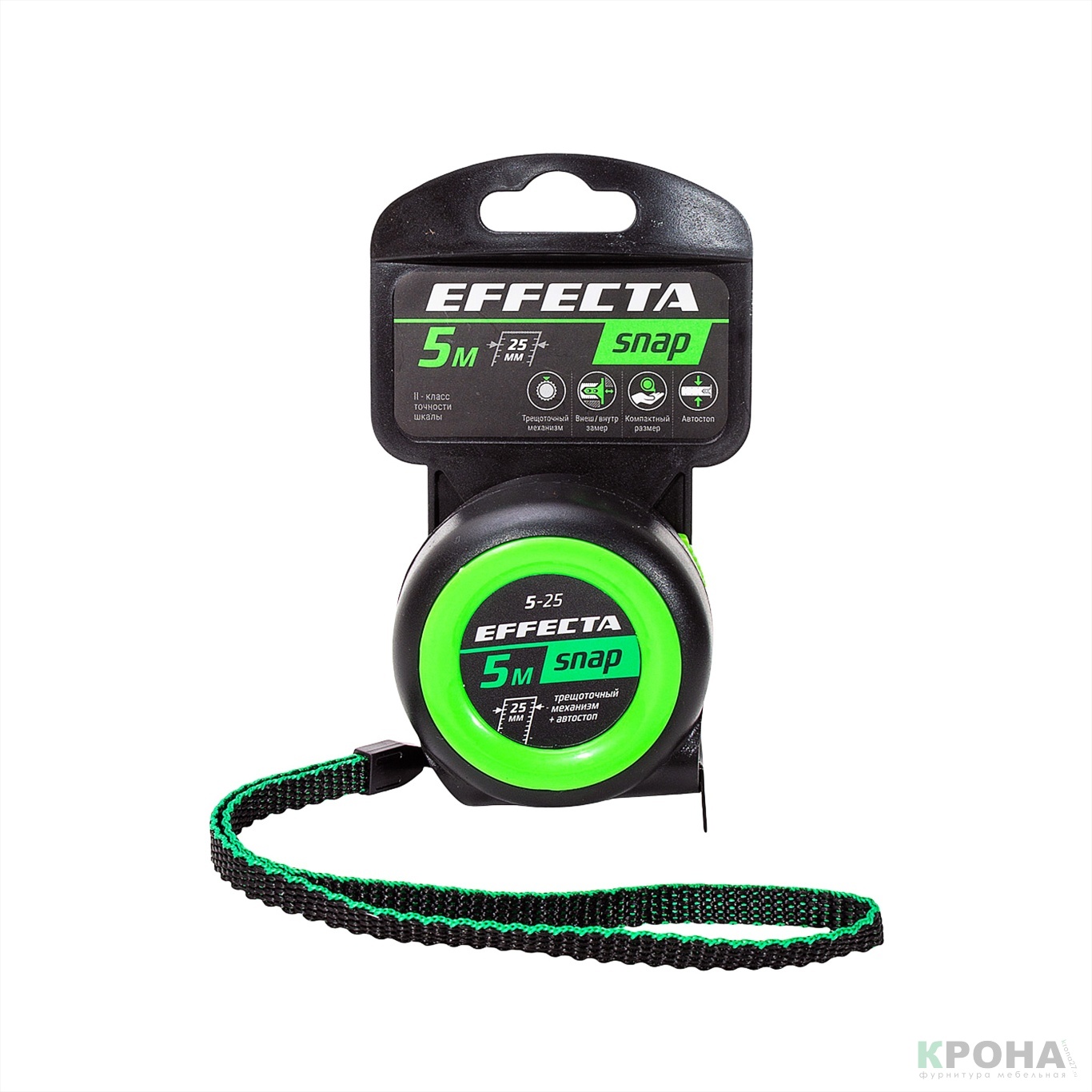 Рулетка Effecta Snap КОМПАКТНАЯ проф. (5*25, автостоп, трещетка)