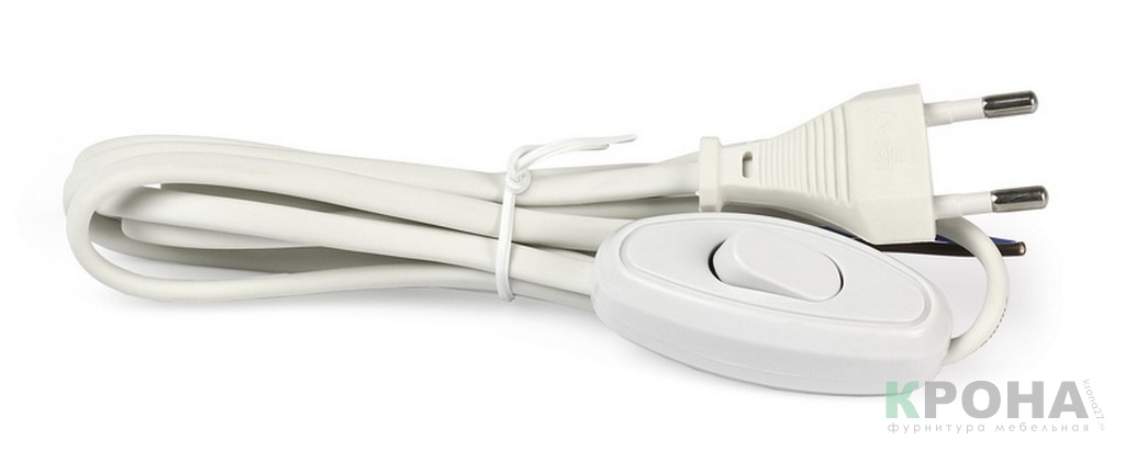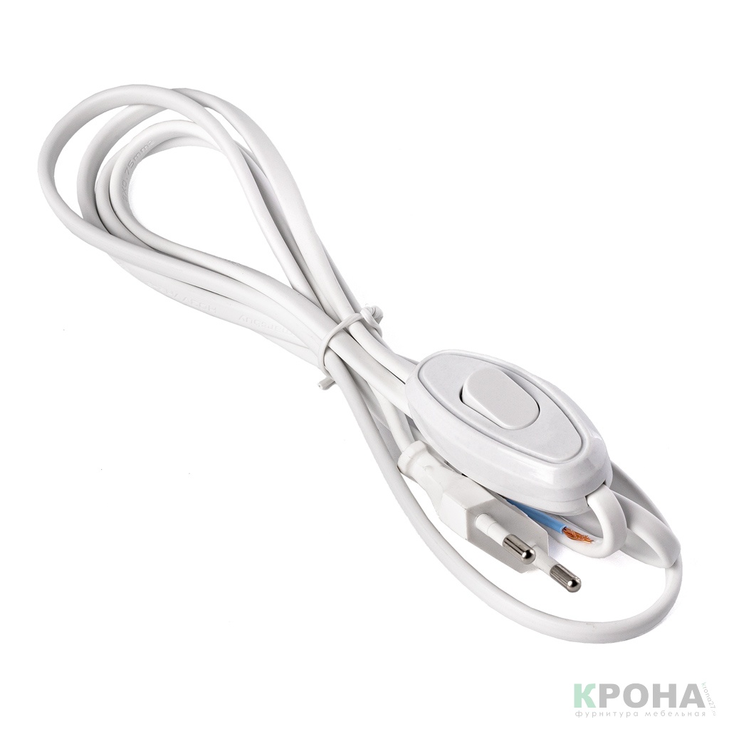Шнур питания с выключателем и вилкой (БЕЛЫЙ, 1.7м) (6534)