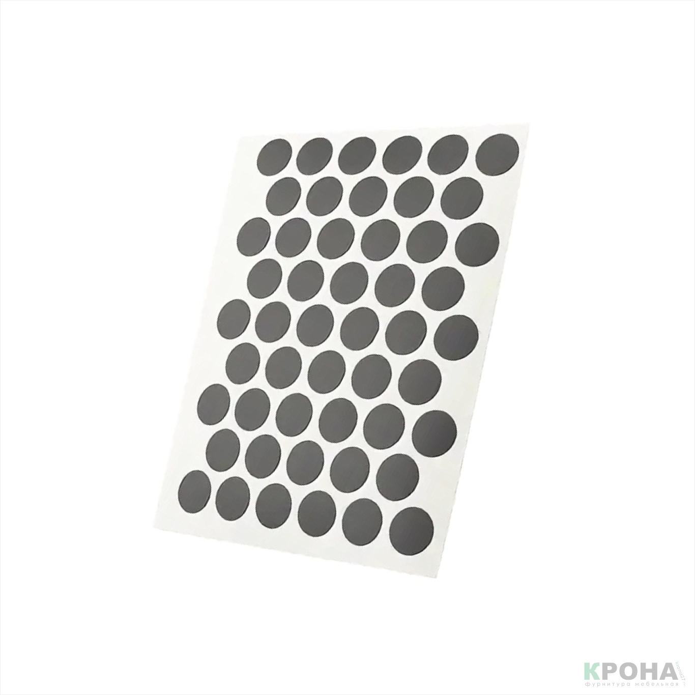 Заглушка самоклеящаяся (антрацит, графит, Серая шагрень). Заглушка диаметром 20мм применяется для закрытия эксцентриков, отверстий в ЛДСП соответствующего декора. Придает законченный вид мебельному изделию и скрывает следы монтажа, технических отверстий и следов сборки. Продается паллетками, на одном листе - 24шт.