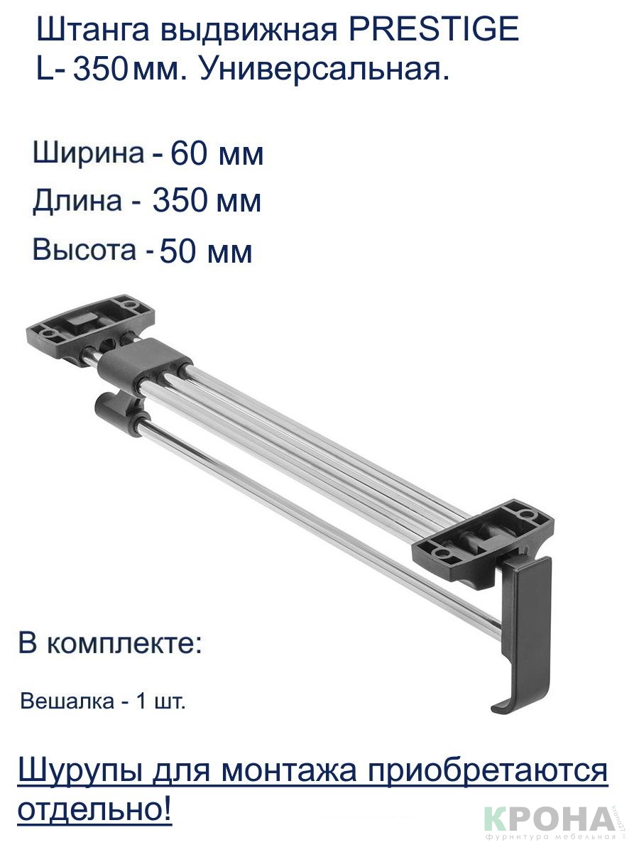 Держатель плечиков выдвижной 350мм - используется для поперечного размещения плечиков для одежды, крепится к полке снизу. Нагрузка 6кг.