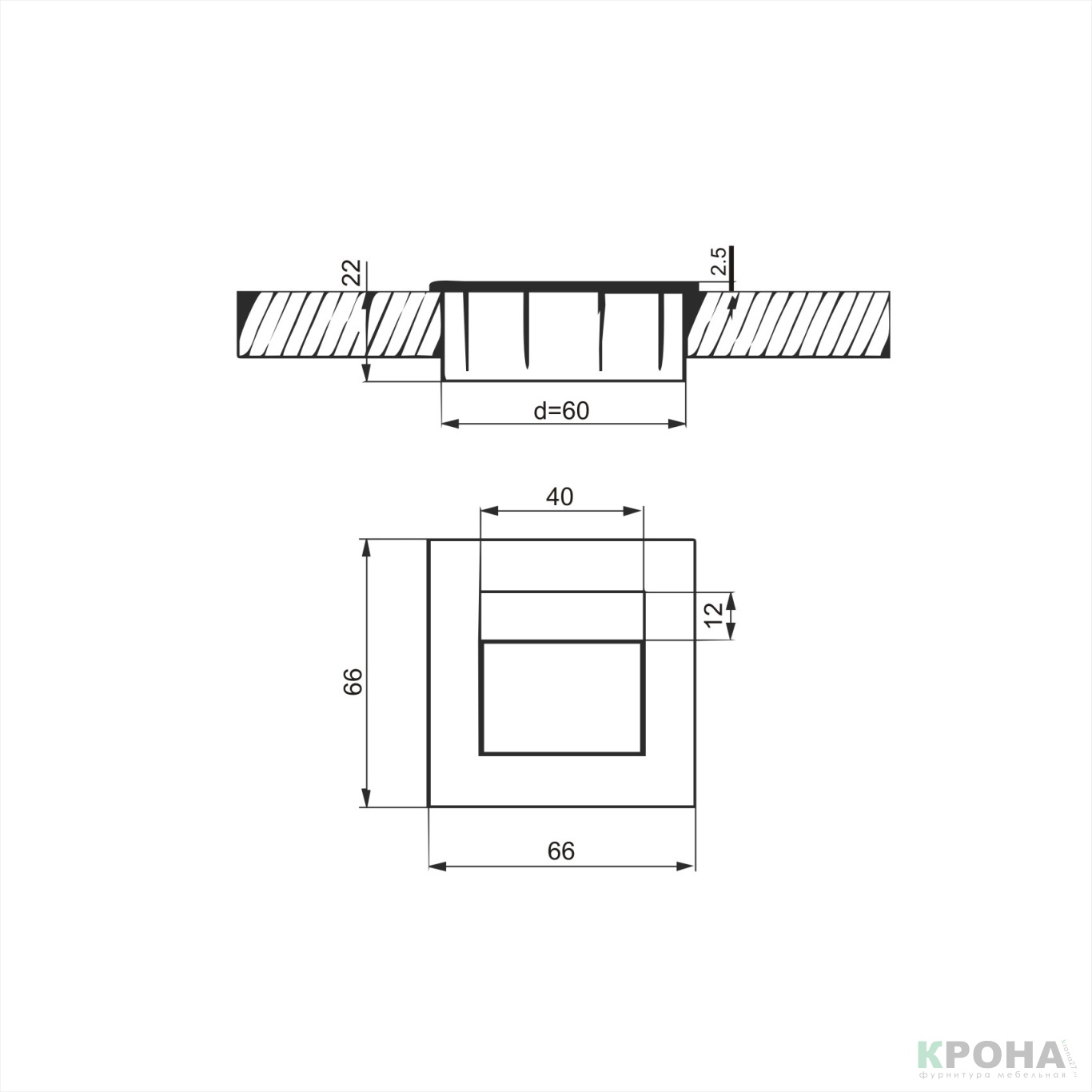 Кабель-канал врезного монтажа, квадратного сечения для проводов (заглушка для кабеля ТЭМПО). Размеры отверстия для установки 60мм. (Круглое посадочное отверстие)