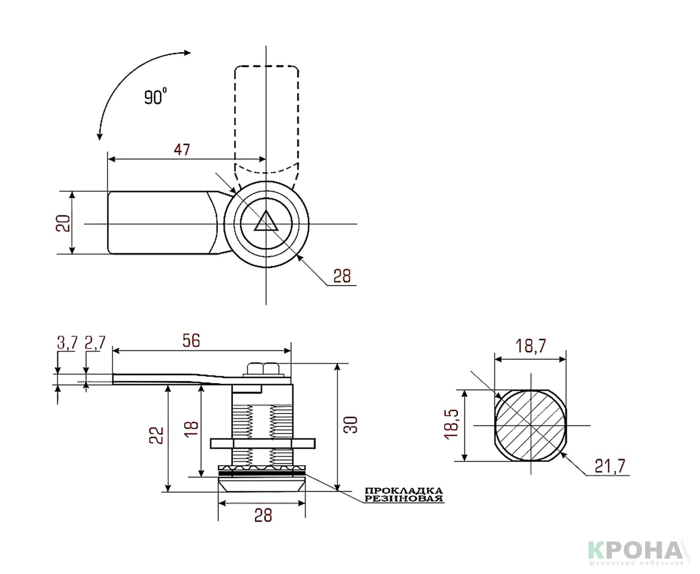 Замок щитовой поворотный 705, d19*30мм (защелка, треугольный ключ) (8976)
