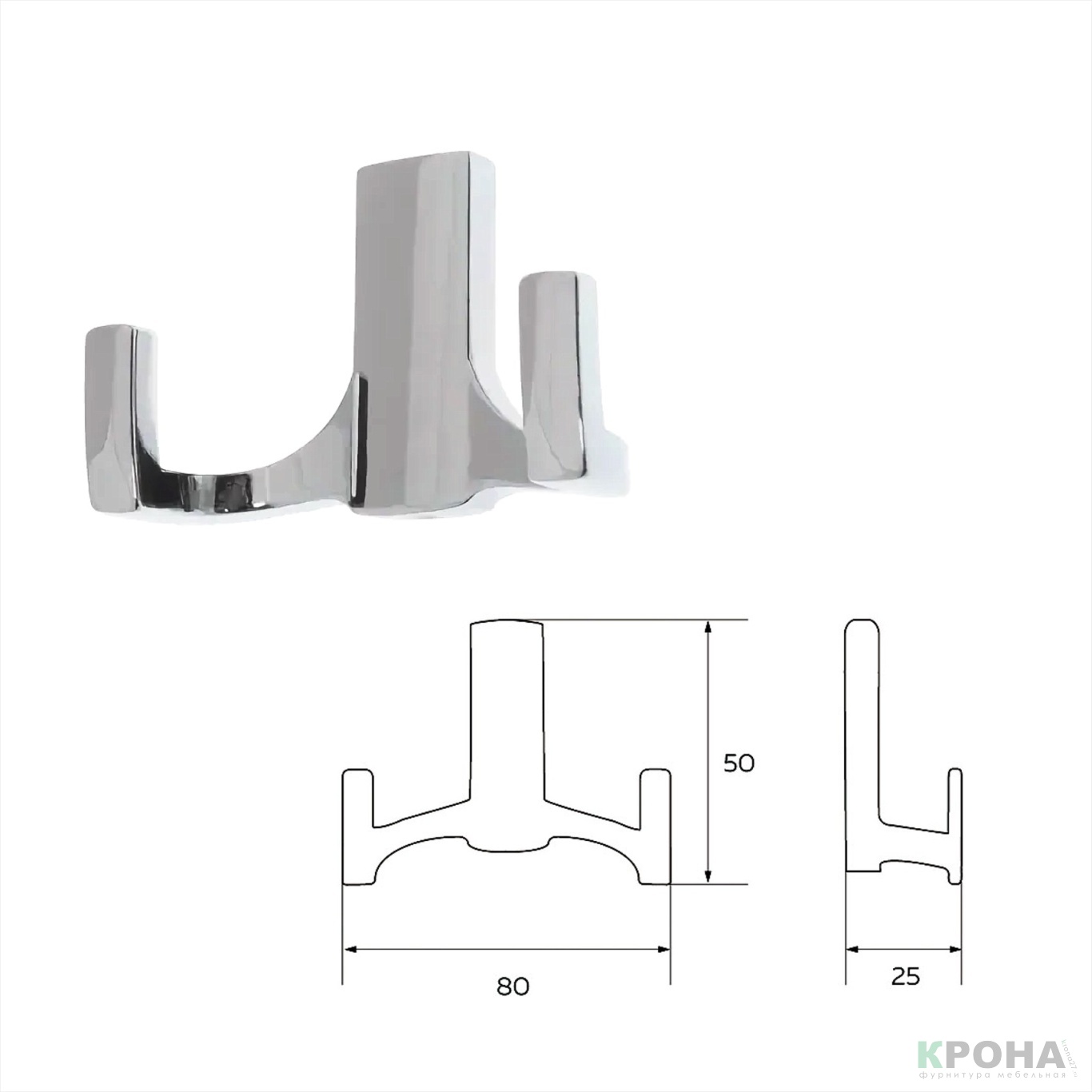 Крючок 2х рожковый ХРОМ (KR 330, скрытый монтаж) (8987)