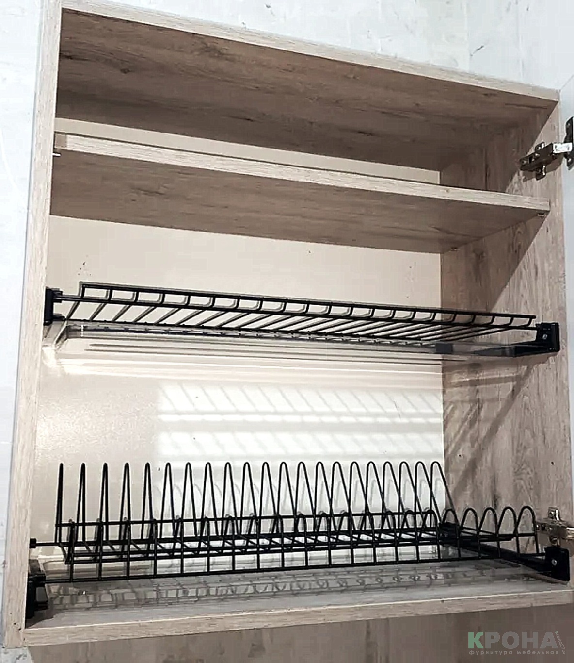 Черное матовое износостойкое покрытие (сталь с антикоррозионным покрытием «ЧЕРНЫЙ матовый»). Сушка без рамки предназначена для установки в кухонные модули.