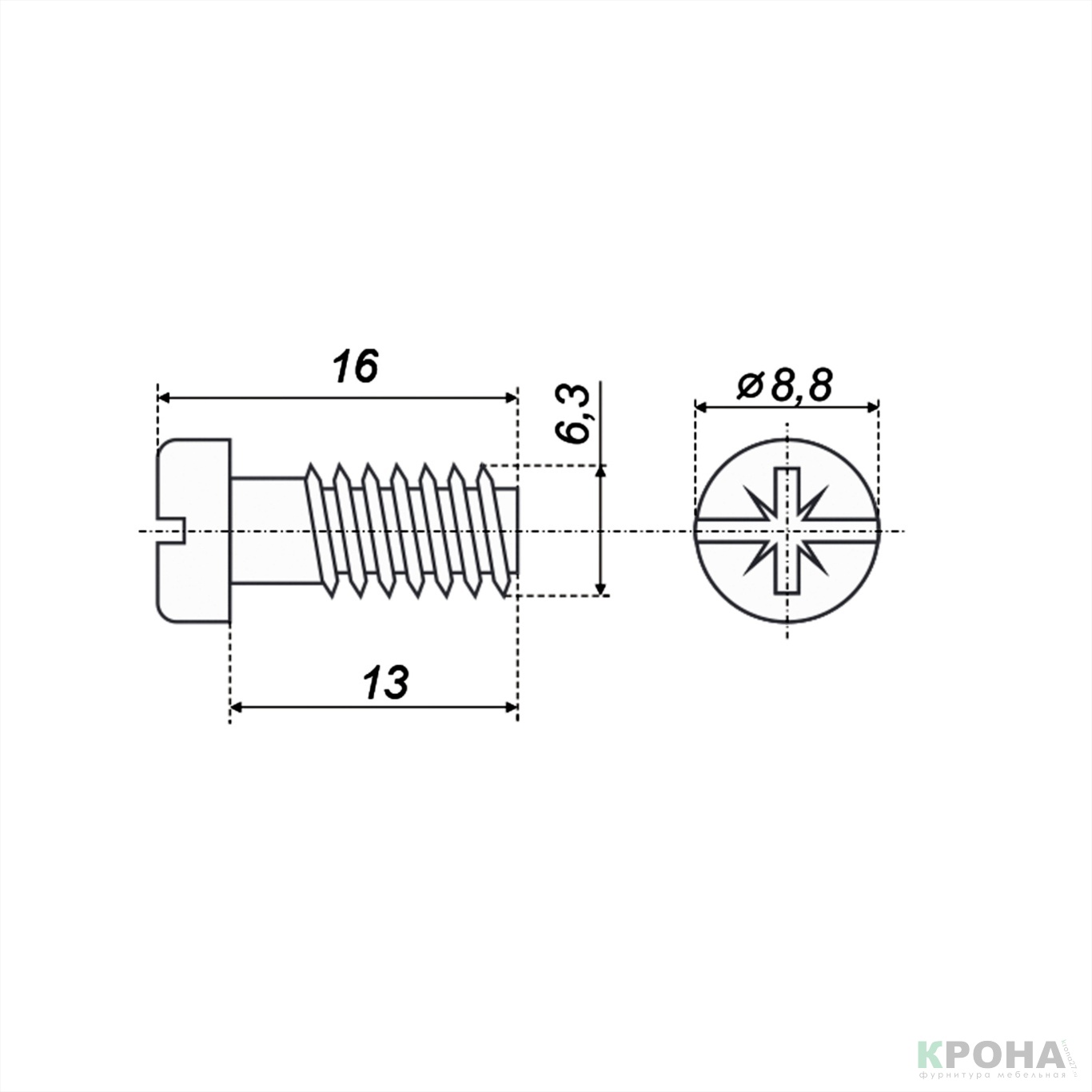 Евровинт 6.3*13 (еврошуруп, крест, головка полукруглая, PZ), 1шт (9026)